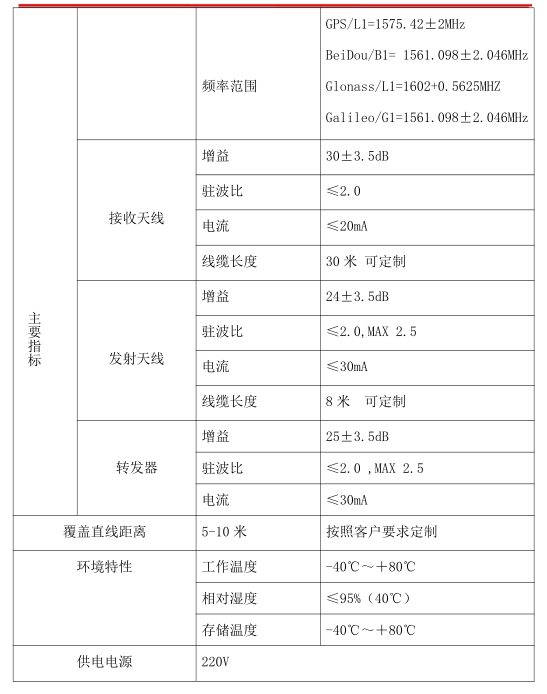 卫星信号转发器主要功能是接收室外 GNSS 信号,经同轴线缆将 GNSS 射频信
